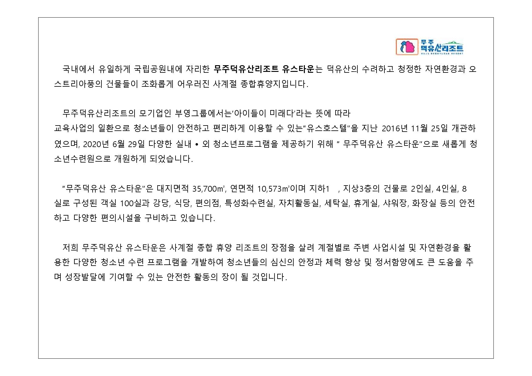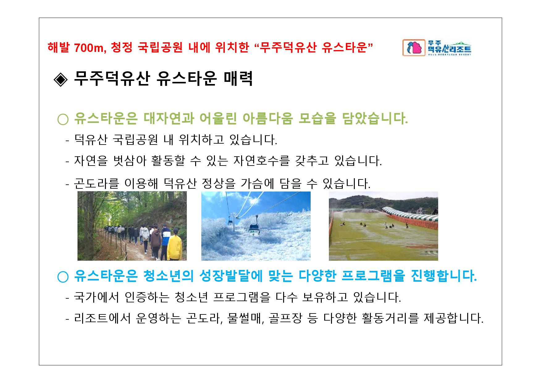 무주덕유산리조트 청소년 수련활동 안내