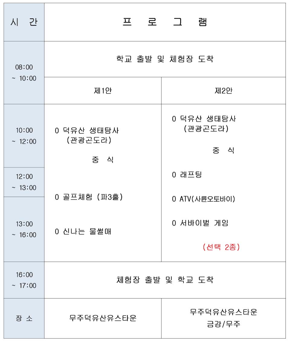 - 당일 프로그램