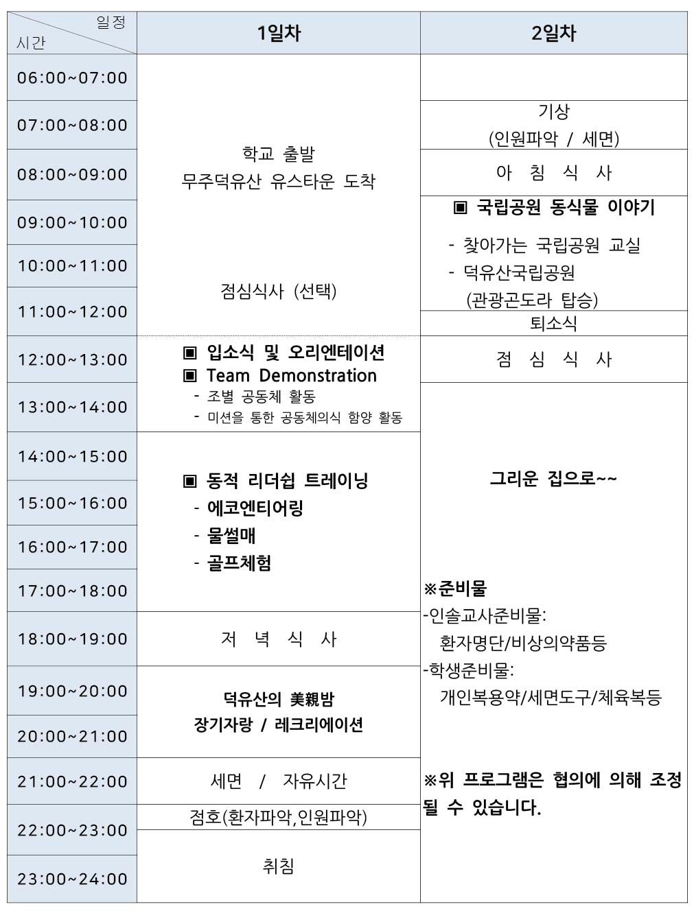 - 2박 3일 프로그램